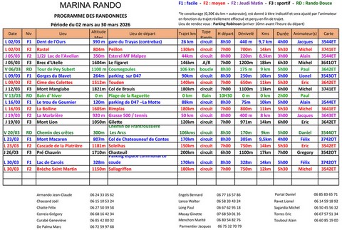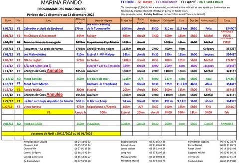 Programme des Randonnées 2025